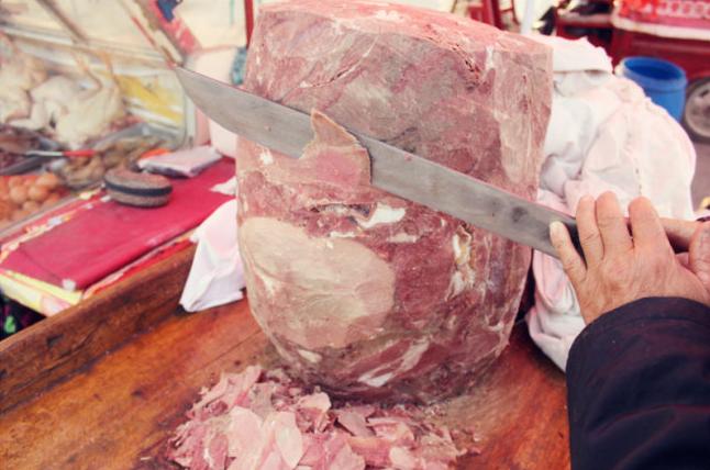 当然,小车牛肉的历史远不止这些。您看小车牛肉切下来的肉是不是很眼熟呢?是的,兰州拉面。