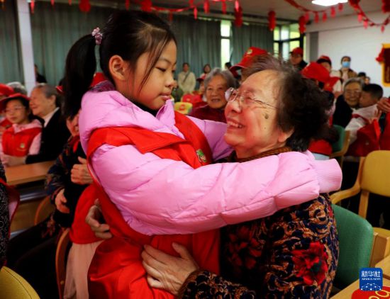 10月25日,在河南省南阳市中健天佑独山基地养老院,南阳市小雷锋志愿者协会的志愿者与老人进行“抱一抱 更温暖”互动活动。